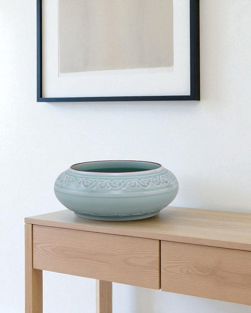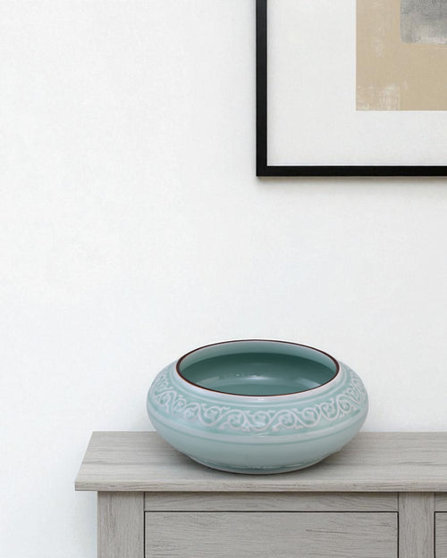 Serene Vine Celadon Glaze Decorative Urli Bowl