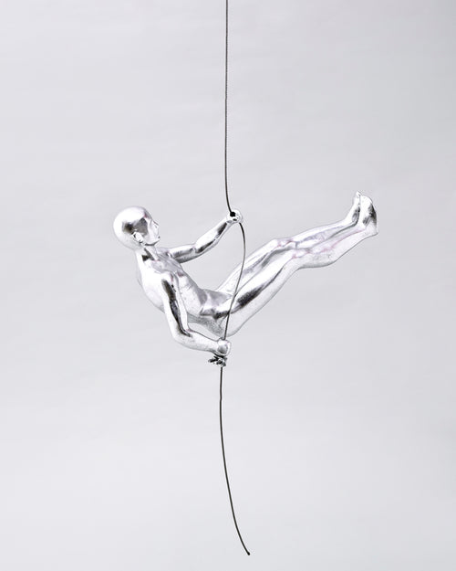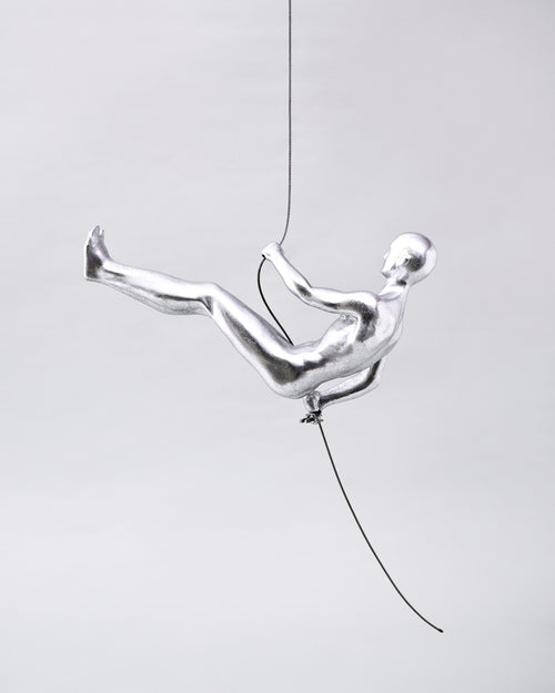 Add a touch of strength, ambition, and modern artistry to your space with this Silver Climbing Man Decorative Sculpture. Designed with a sleek metallic finish, this hanging figurine captures the dynamic motion of a climber ascending a rope. Its contemporary form brings a sense of movement and motivation to any wall, making it a perfect statement piece for living rooms, offices, hallways, or creative spaces.