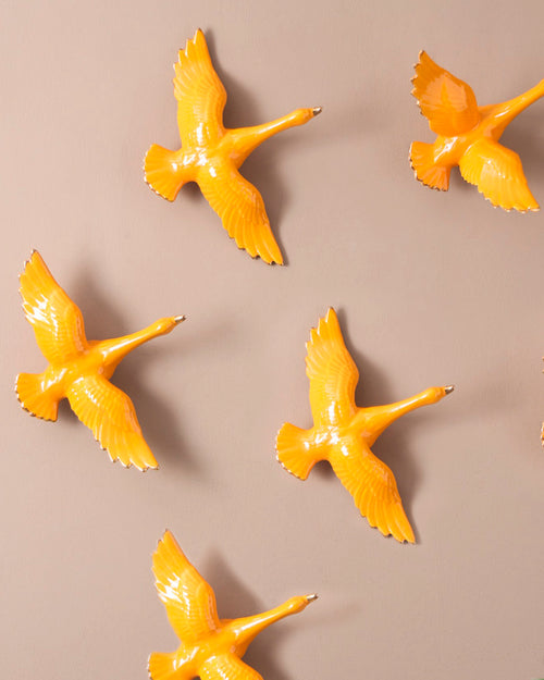 One can almost hear these charming birds chirp! These ceramic wall mounted birds come in a smooth matte finish and have a life-like mid-flight position - they can be displayed together or separate.