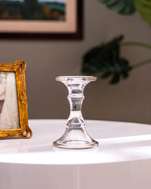 A glass candle stand is a beautiful and elegant addition to any home decor. Its transparent material allows the candle's flame to shine through, creating a warm and inviting ambiance.