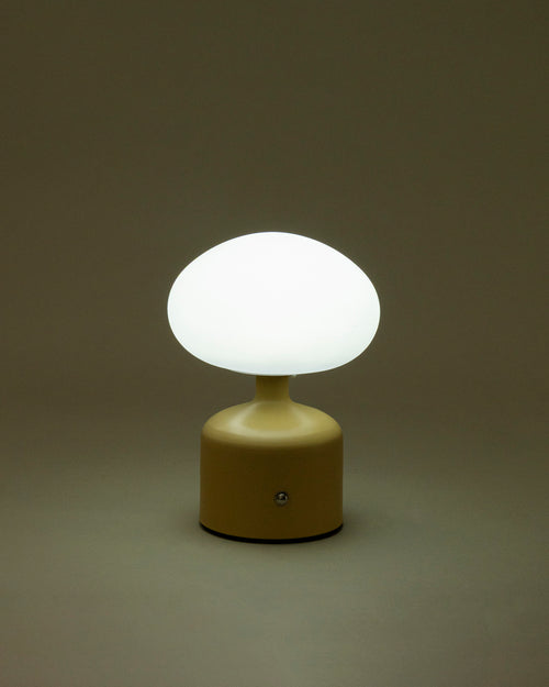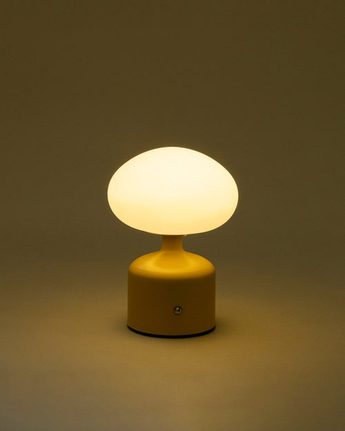 Modern table lamp with a soft white dome diffuser and a yellow base. Provides warm and cozy ambient lighting for bedrooms, living rooms, cafes, or bedside tables. Its compact and stylish design with a stable base and easy on/off switch makes it ideal for everyday use.