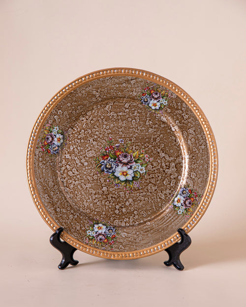 This decorative plate features a beautifully detailed flower design inspired by the elegance of nature. The intricate floral patterns are rendered in soft, earthy tones, evoking a sense of tranquility and natural beauty.