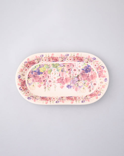 Bring the calm beauty of spring to your table with the Spring Serenity Serving Platter. Adorned with delicate watercolor florals in soft pink, lilac, and green hues, this elegant oval platter captures the essence of blooming gardens and gentle breezes.