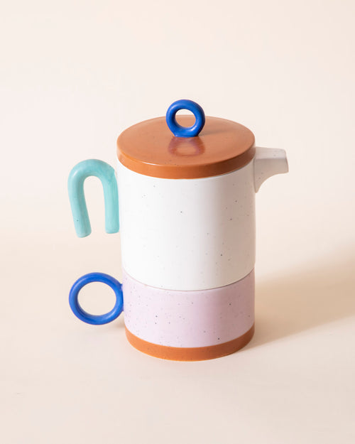 The Stack & Sip Tea For Two Set is perfect for a cozy and convenient tea experience. With its stackable design, you can easily store and transport your favorite tea for two. Enjoy a delicious and refreshing cup of tea with this set, made for tea lovers who appreciate both convenience and quality.