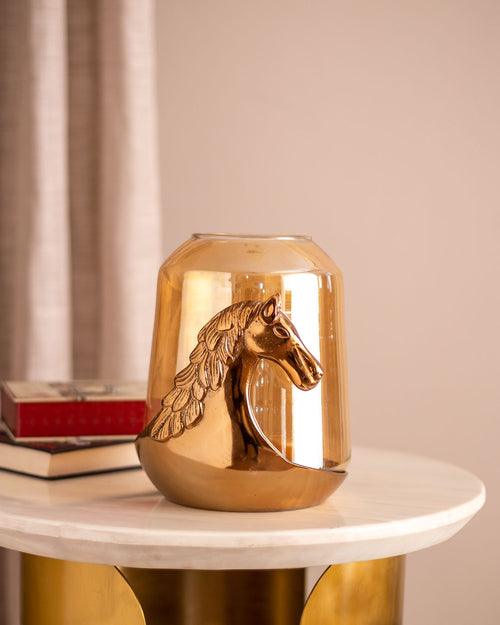 A hand-finished marvel of modern artisans, the horse serves as a base for the brown-hued glass bowl. A magnificent idea for a centerpiece for your entrance console or dining room table, this decorative accent will bring instant majesty to your home.