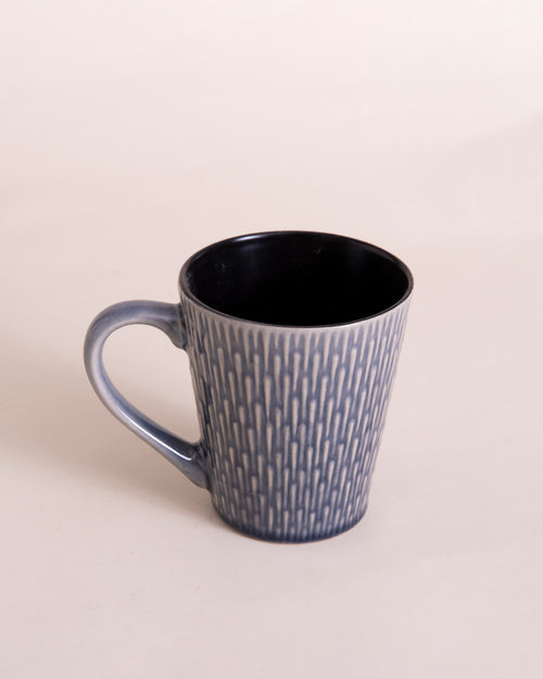 Expertly crafted with a reflective sunburst glaze, this coffee mug is sure to impress. With a unique finish that catches the light, it adds a touch of elegance to any beverage. Despite its flawless appearance, a small flaw gives each mug character and charm. Enjoy your favorite drink in style.