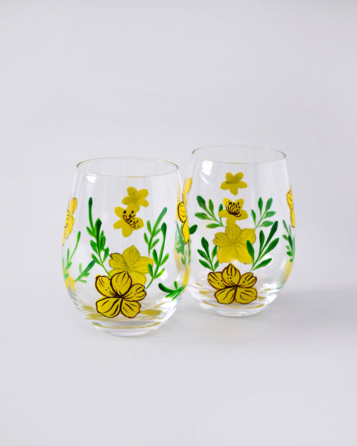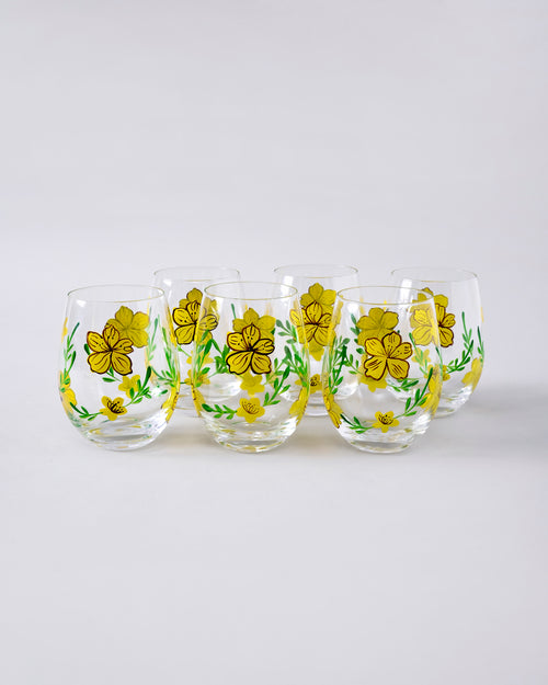 A beautifully crafted glass featuring elegant hand-painted floral patterns that add a refreshing charm to any setting. Its smooth, curved silhouette offers a comfortable grip while showcasing intricate artwork that brings a touch of nature and sophistication to your table décor perfect for everyday use or special occasions.