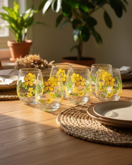 Sunny Bloom Drinking Glass - Set Of 6