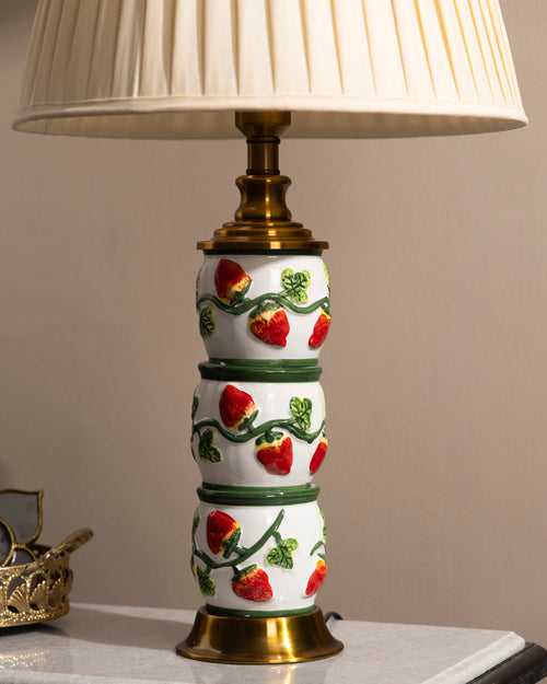 Bring a touch of freshness and charm to your home with this handcrafted ceramic table lamp. Designed with a beautifully sculpted fruit inspired base, this lamp adds a playful yet elegant accent to any room décor.