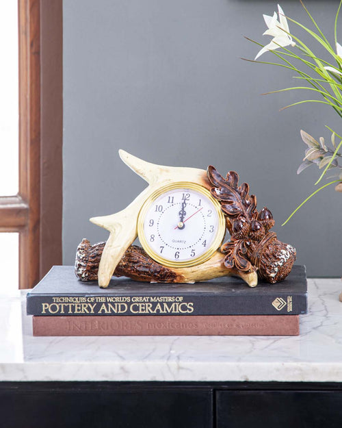 The antler Table Clock is a striking Decorative Timepiece, combining Rustic charm with Modern Functionality. Its unique Design Features intricately crafted antlers that serve as the clock's base, adding a touch of nature-inspired elegance to any room. Perfect for both cabin decor and contemporary interiors, this clock seamlessly blends style and practicality.