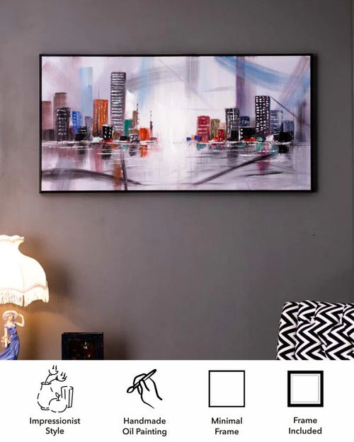 The City from Afar Semi Hand-made Wall Art - 48*25 Inch
