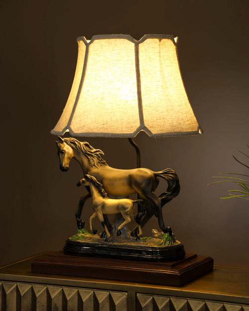 The Equine Guardian Horse Table Lamp is a sleek, modern addition to any equestrian-themed space. With its intricate horse design, this lamp adds a touch of elegance and class. The perfect way to illuminate your love for horses while providing functional lighting. Expertly crafted for durability and style.