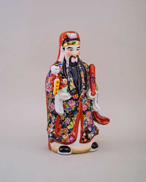 Wearing a hat of a high official in the emperor's court, the God Lu represents good fortune. As a society based on Confucius's scholar-statesman philosophy, the way to acquire good fortune was first to receive a good education and then to become a high-rank official. He is always in the centre of these three.