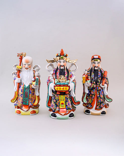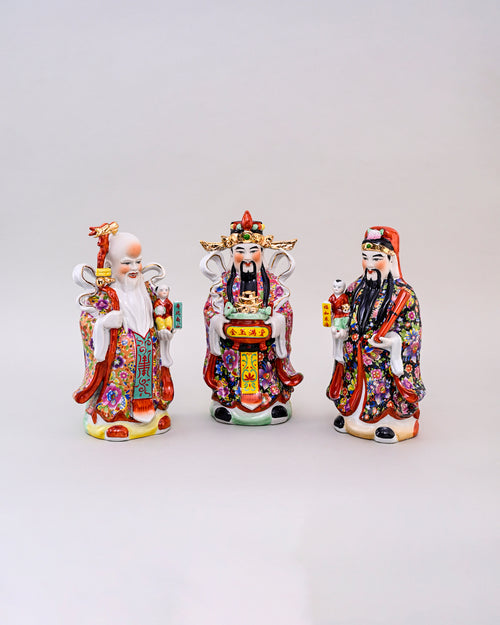 Made of porcelain and in an irresistible colour palette, the three Gods are seen in households to bring positive Feng-Shui.