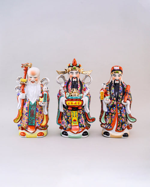 Made of porcelain and in an irresistible colour palette, the three Gods are seen in households to bring positive Feng-Shui.