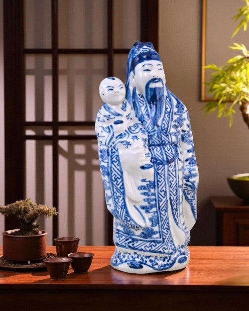 Made of porcelain and in an irresistible blue and white colour palette, the three Gods are seen in households to bring positive Feng-Shui.