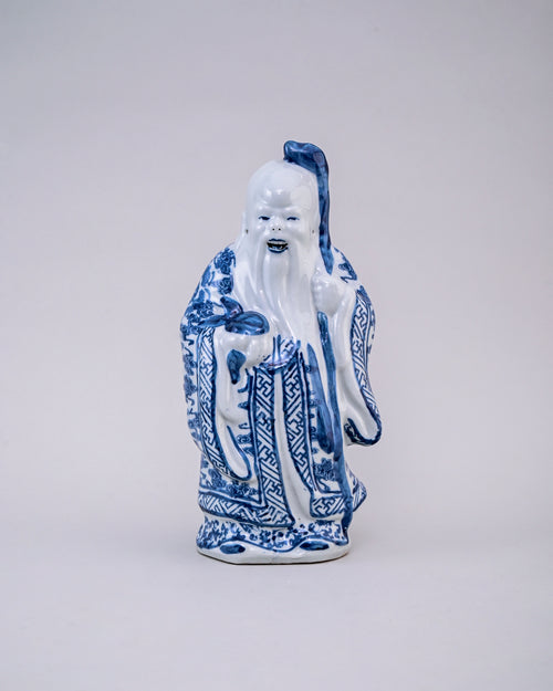 The long-bearded old sage is the God of longevity, Shou. He is always seen with a peach in his hand which is a symbol of longevity in Chinese mythology.