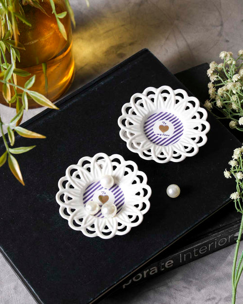 Whether placed on your dresser to house your earrings and rings or on your desk to hold pins and clips, this whimsical ceramic catchall dish is as delightful as it is functional.