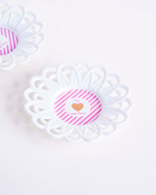 Whether placed on your dresser to house your earrings and rings or on your desk to hold pins and clips, this whimsical ceramic catchall dish is as delightful as it is functional.