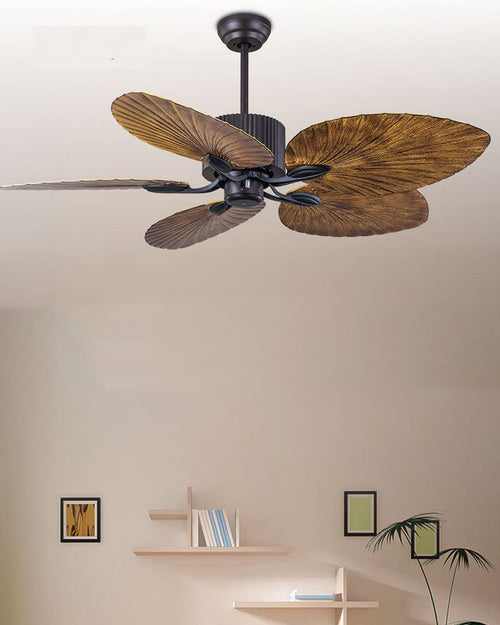 This ceiling fan brings a tropical vibe to any room with its palm leaf blades. Enjoy energy-efficient cooling and improve air circulation in a stylish way. The fan's unique design and durable construction make it a great addition to any home or office space.