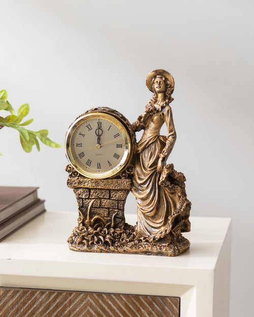 An aged aura, a vintage feel, and light undertones define this epitome of regal décor. The graceful work and intricate carvings add to the dimension and elegance. Undeniably nostalgic and charming, this timepiece also embraces charm. The clock has been hand-finished to give an aged, weathered appeal & the dial features Roman numerals on a white base!