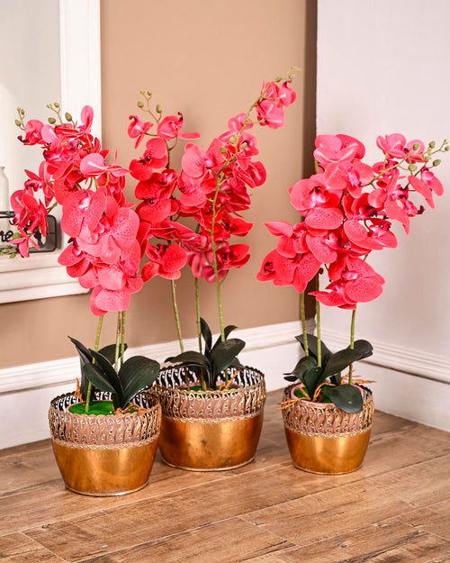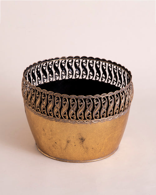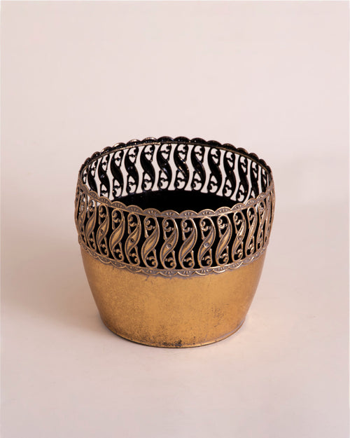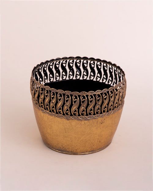 These embossed metal planters combine artistry with durability. The antique tone and intricate floral motifs add sophistication to any room or garden. Their weathered metallic finish evokes timeless elegance, perfect for complementing both modern and vintage interiors