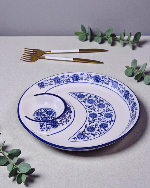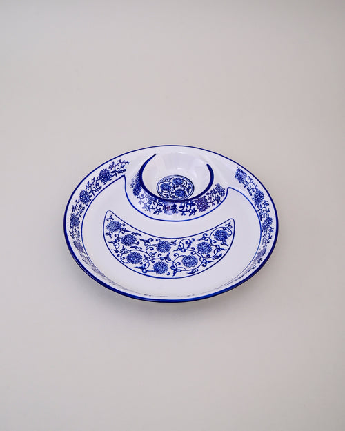 Elevate your serving experience with this Vintage Blue & White Chip n Dip Platter. Its timeless design pairs classic colors with practical style, perfect for any gathering. Durable and elegant, it makes snack time effortlessly charming.