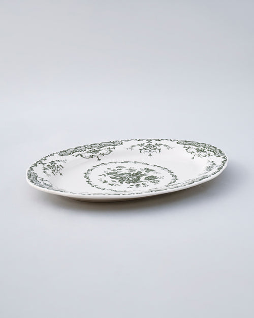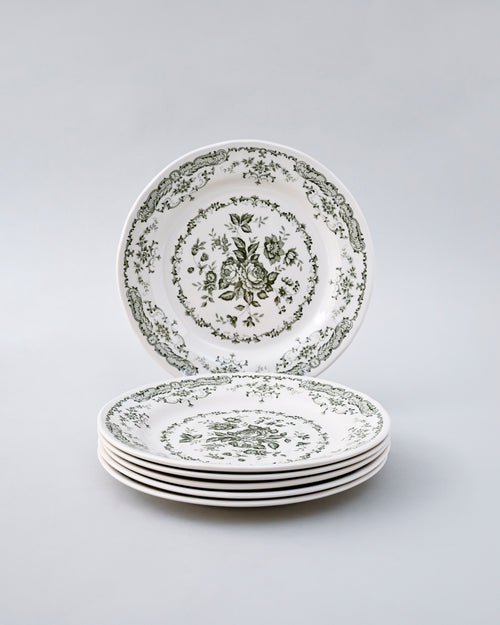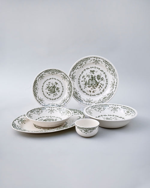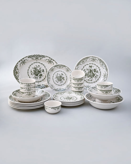 Vintage Floral Green & White Dinner Set - 28 Piece