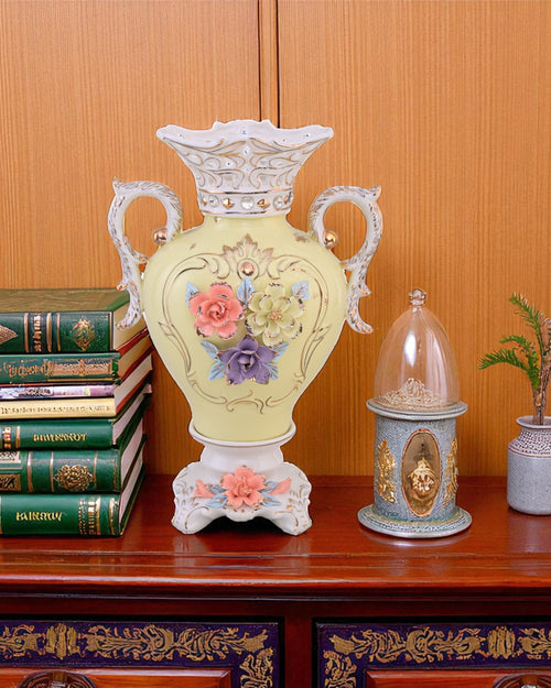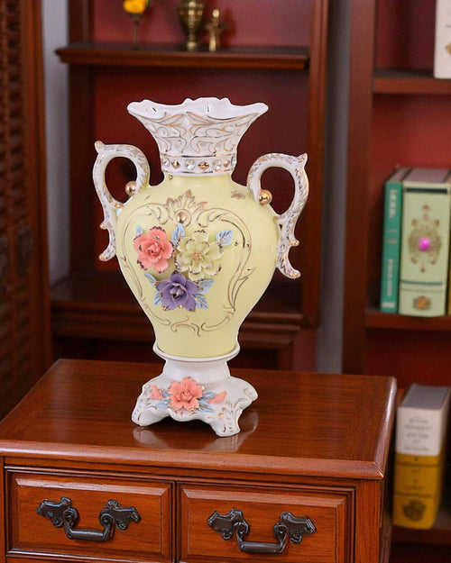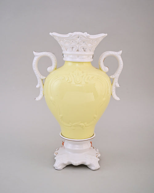 Vintage Floral Porcelain Vase with Handles - Yellow