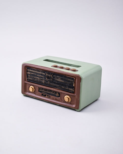 Add a retro charm to your space with the Vintage Radio Tissue Holder. Designed to resemble a classic radio, this quirky yet elegant piece combines functionality with nostalgic style. The pastel green finish and gold-toned knobs give it a timeless appeal perfect for your living room, study, or office décor.