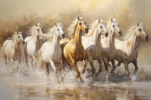 Elevate the energy of your home or workspace with this beautifully crafted 7 Running Horses Painting, inspired by the principles of Vastu Shastra. Known for symbolizing success, speed, and positive momentum, this artwork is more than just decor—it's a powerful tool to attract prosperity and growth.