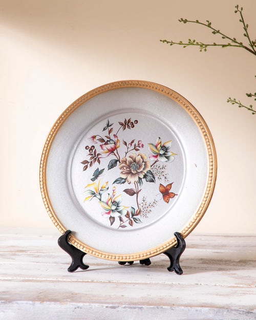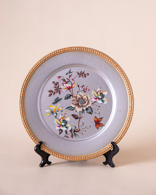 This decorative plate features a beautifully detailed flower design inspired by the elegance of nature. The intricate floral patterns are rendered in soft, earthy tones, evoking a sense of tranquility and natural beauty.