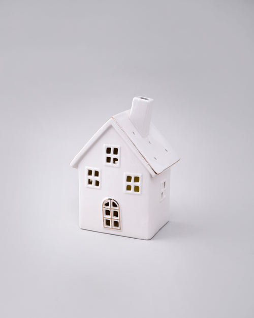 Bring peaceful elegance to your space with this charming white cottage-inspired tealight holder that doubles as a decorative sculpture. The delicate design creates a warm, ambient glow while adding rustic charm to any room. Perfect for creating cozy moments and enhancing your home décor.