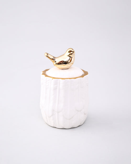 White Serenity Feather Jar Bird Lid