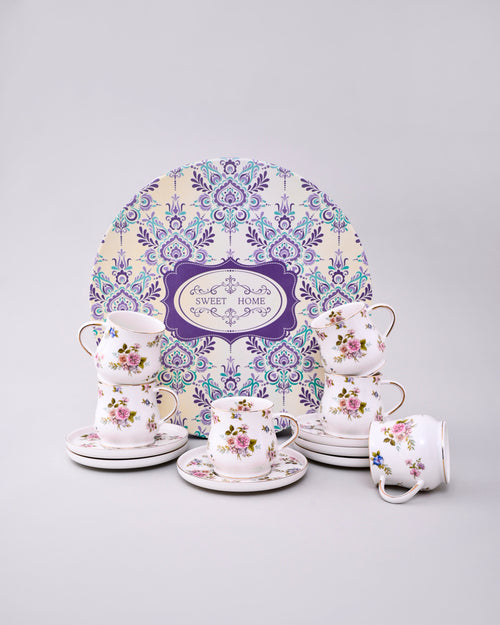 Wildflower Symphony Tea Cup With Saucer - Set Of 6
