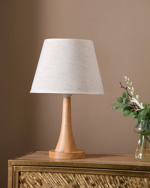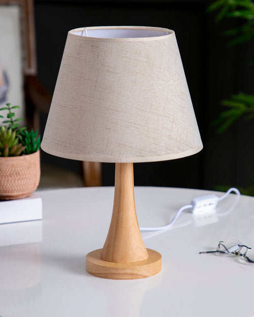 This table lamp features a stylish design with a wooden base, making it a perfect addition to any home or office decor. It provides a warm and cozy ambiance, while the sturdy wood material ensures a durable and long-lasting product.